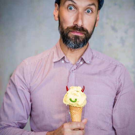 Poznáte z mého výrazu, jakou zmrzlinu jsem vám právě vyrobil? První verze nebyla dost „hot“, takže teď dodělávám druhou – a ta už má grády. Maracuja s chilli skvěle ladí, takže pokud máte rádi kombinaci chilli a zmrzliny, rozhodně se stavte.